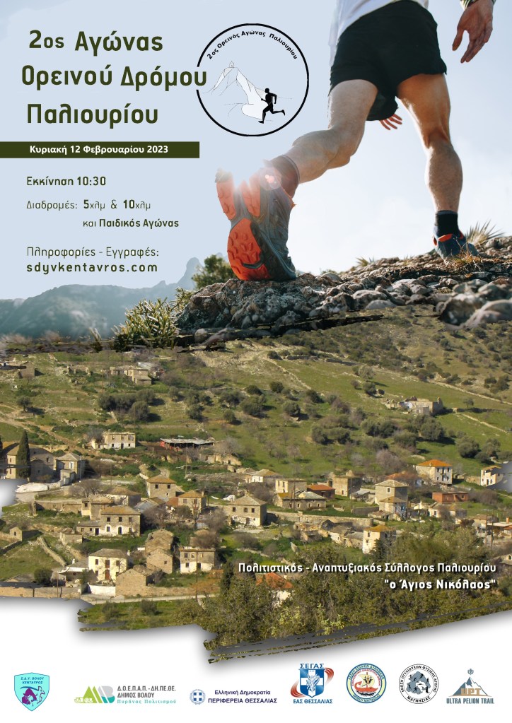 Ο Πολιτιστικός και Αναπτυξιακός Σύλλογος Παλιουρίου “Ο Αγ. Νικόλαος”, ο Κένταυρος Βόλου, η Δ/νση Αθλητισμού ΔΟΕΠΑΠ-ΔΗΠΕΘΕ του Δήμου Βόλου και η Περιφέρεια Θεσσαλίας, υπό την αιγίδα της ΕΑΣ ΣΕΓΑΣ Θεσσαλίας και με την υποστήριξη του ULTRA PELION TRAIL και της Ένωσης Πτυχιούχων Φ. Αγωγής Μαγνησίας καθώς και συλλόγων – φορέων της περιοχής, διοργανώνουν τον 2ο Αγώνα Ορεινού Δρόμου Παλιουρίου στον οικισμό Παλιούρι Διμηνίου. Πολύτιμες υπηρεσίες θα προσφέρει η Λέσχη Ειδικών Δυνάμεων Ν. Μαγνησίας.