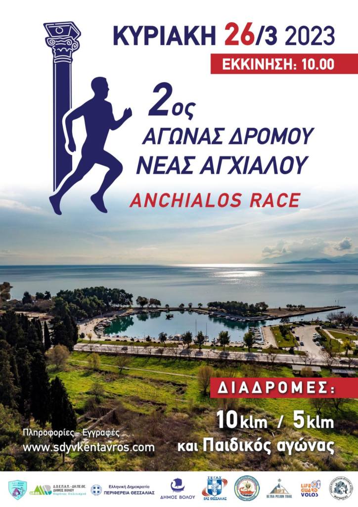 Ο ΣΔΥ Βόλου-Κένταυρος συνδιοργανώνει με την Διέυθυνση Αθλητισμού του ΔΟΕΠΑΠ-ΔΗΠΕΘΕ, τον Δήμο Βόλου-Κοινότητα Ν.Αγχιάλου , την Περιφέρεια Θεσσαλίας, υπό την αιγίδα της ΕΑΣ ΣΕΓΑΣ Θεσσαλίας και την υποστήριξη της ΕΠΦΑ Μαγνησίας και Ultra Pelion Trail, τον 2ο Αγώνα δρόμου Νεας Αγχιάλου την Κυριακή 26 Μαρτίου 2023 με διαδρομές 10χλμ και 5χλμ και παιδικό αγώνα 500 μέτρων στην παραλία της Ν.Αγχιάλου. Πολύτιμες υπηρεσίες θα προσφέρει η Λέσχη Ειδικών Δυνάμεων Ν. Μαγνησίας και η LIFE GUARD VOLOS .