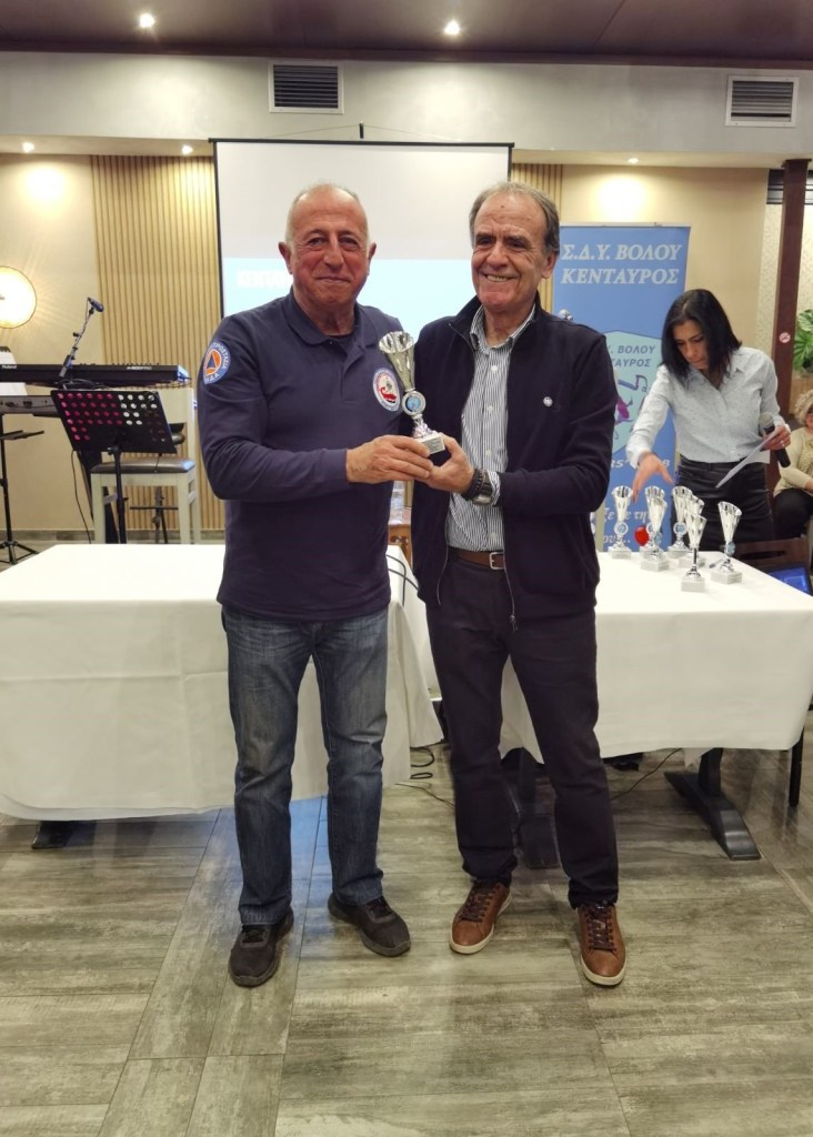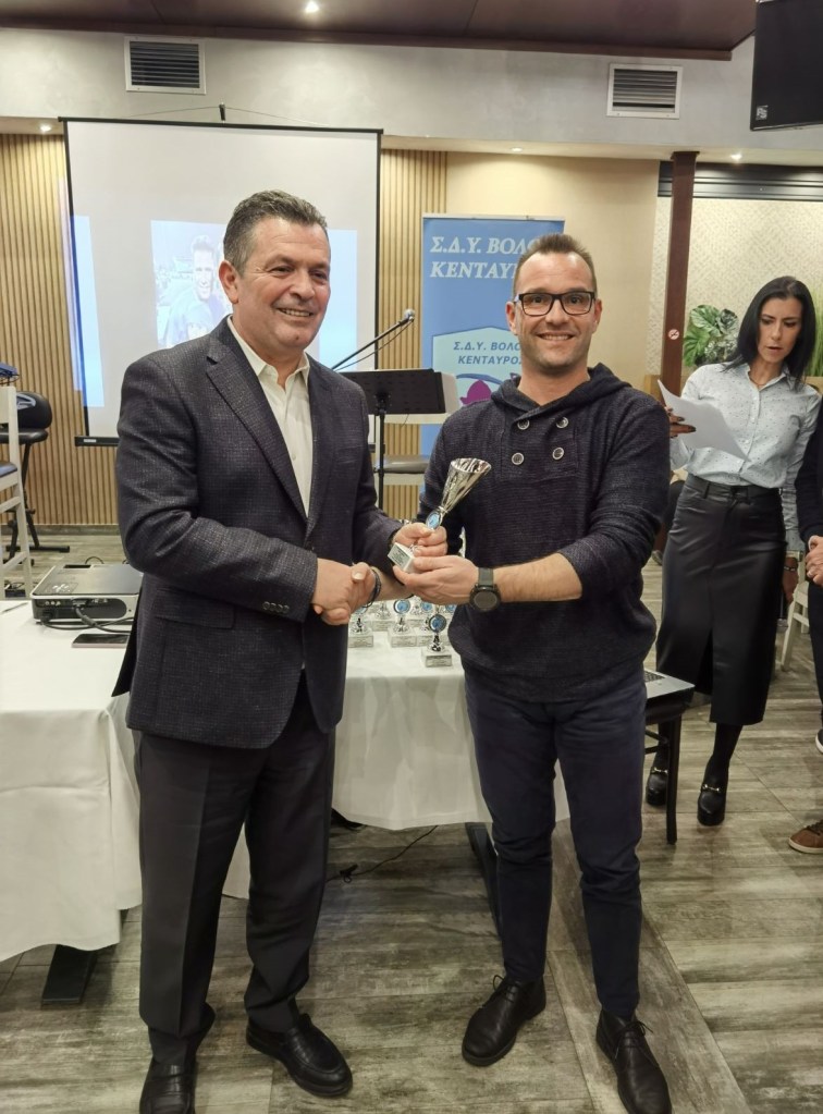Τέλος μια ιδιαίτερη βράβευση έγινε στον Κώστα Κυριαζή από τα μέλη του συλλόγου, για την προσφορά του στο σύλλογο αλλά και για την στάση ζωής με την προσήλωσή του στις αρχές του ολυμπιακού πνεύματος και της ευγενούς άμιλλας. Την τιμητική απονομή έκανε ο πρώην Διευθυντής Πρ/θμιας Εκπαίδευσης Μαγνησίας κ. Ιωάννης Αθανασούλης.
